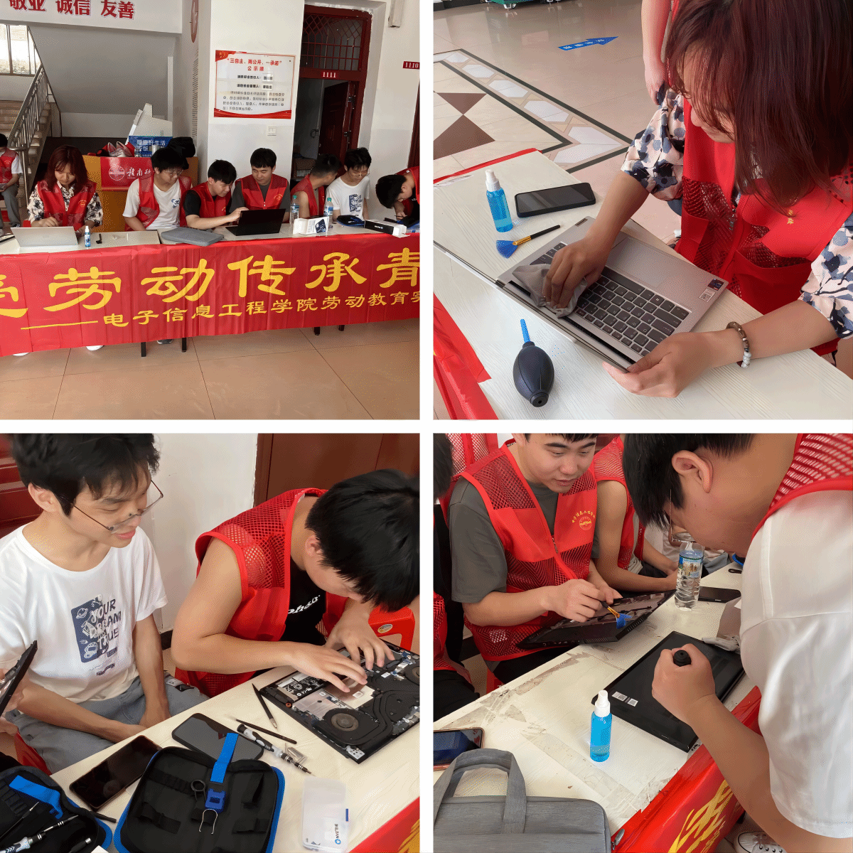 本网讯:为进一步增强学生劳动教育意识,提高实践技能水平,5月21日,电子米乐mile体育官网通信教研室在明德楼开展“电脑义诊”劳动教育实践活动。通信专业学生组成电脑义诊服务队参加本次活动。