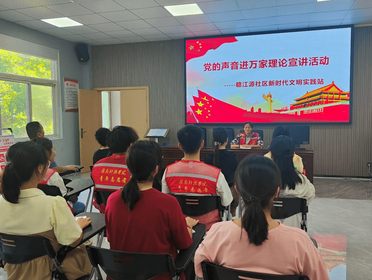 本网讯:为进一步深化对习近平新时代中国特色社会主义思想的学思践悟,引导青年大学生投身新时代火热实践,7月3日至7月7日,信息工程系辅导员李曼如带领4名志愿者组成“筑梦青春队”,深入赣江源社区新时代文明实践站,开展大学生暑期文明实践活动。