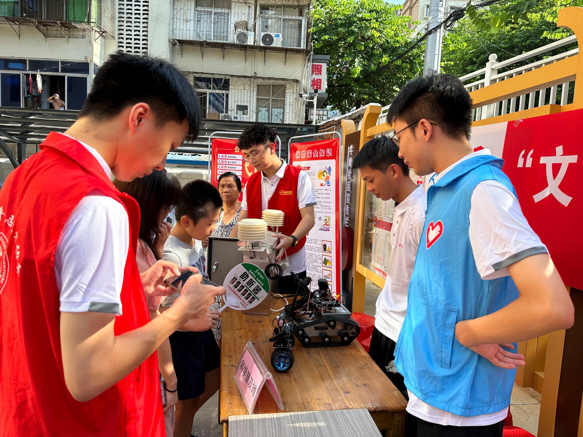 本网讯:科技惠民,在社区“沉浸式”体验科技魅力。8月3日,米乐mile体育官网信息工程系“三信实践队”加入牛岭社区文明集市,以社区“摆摊”群众“赶集”的形式,面向社区居民举办电子科技展览,丰富公众文化生活,传播新时代文明实践正能量。
