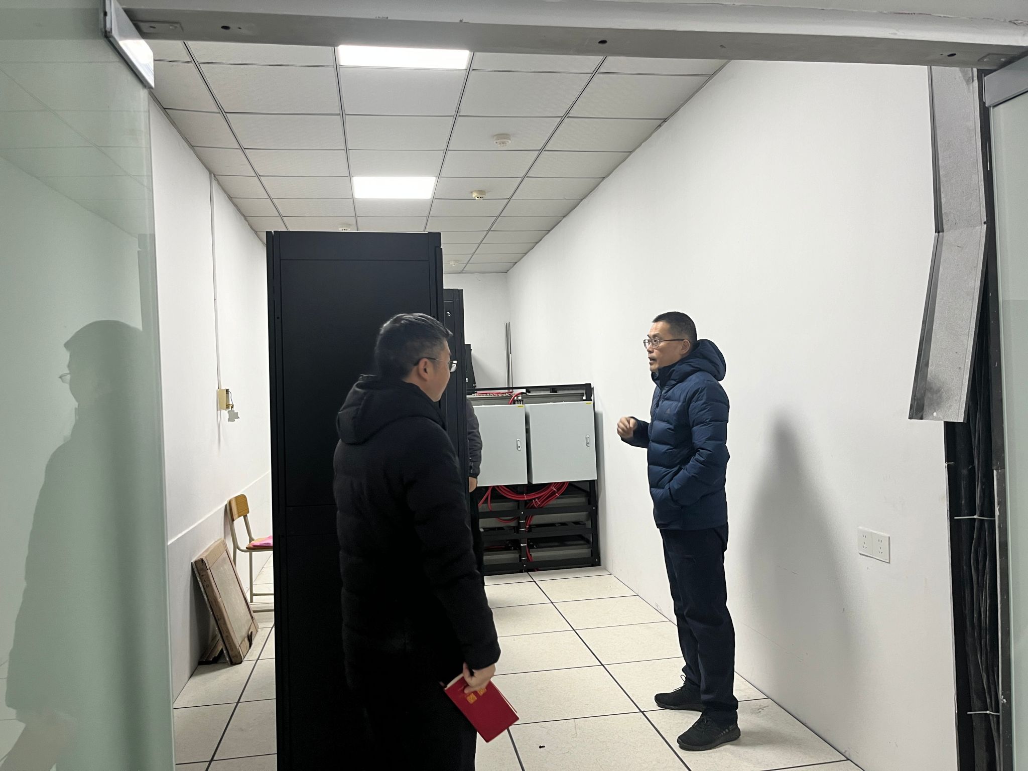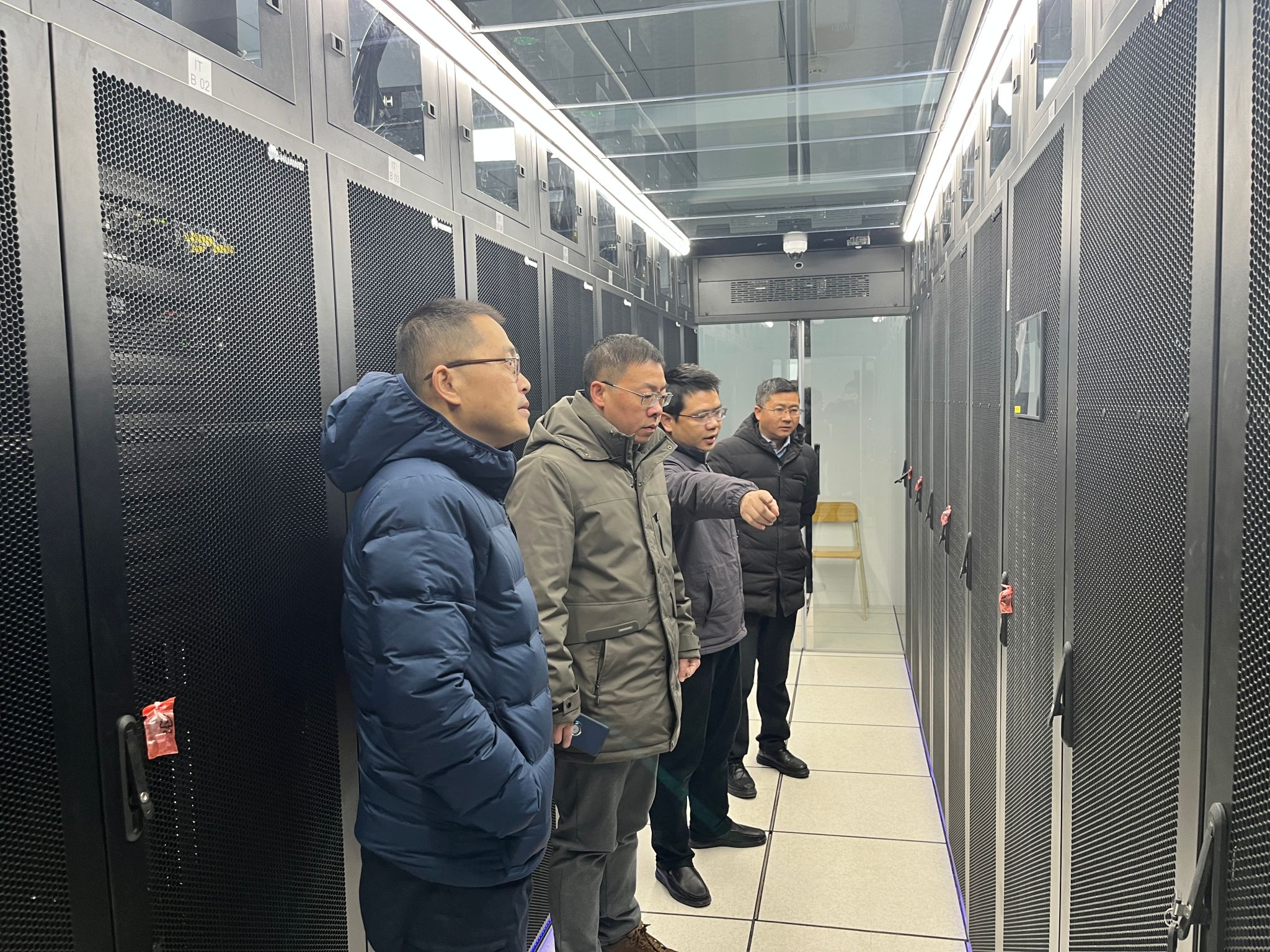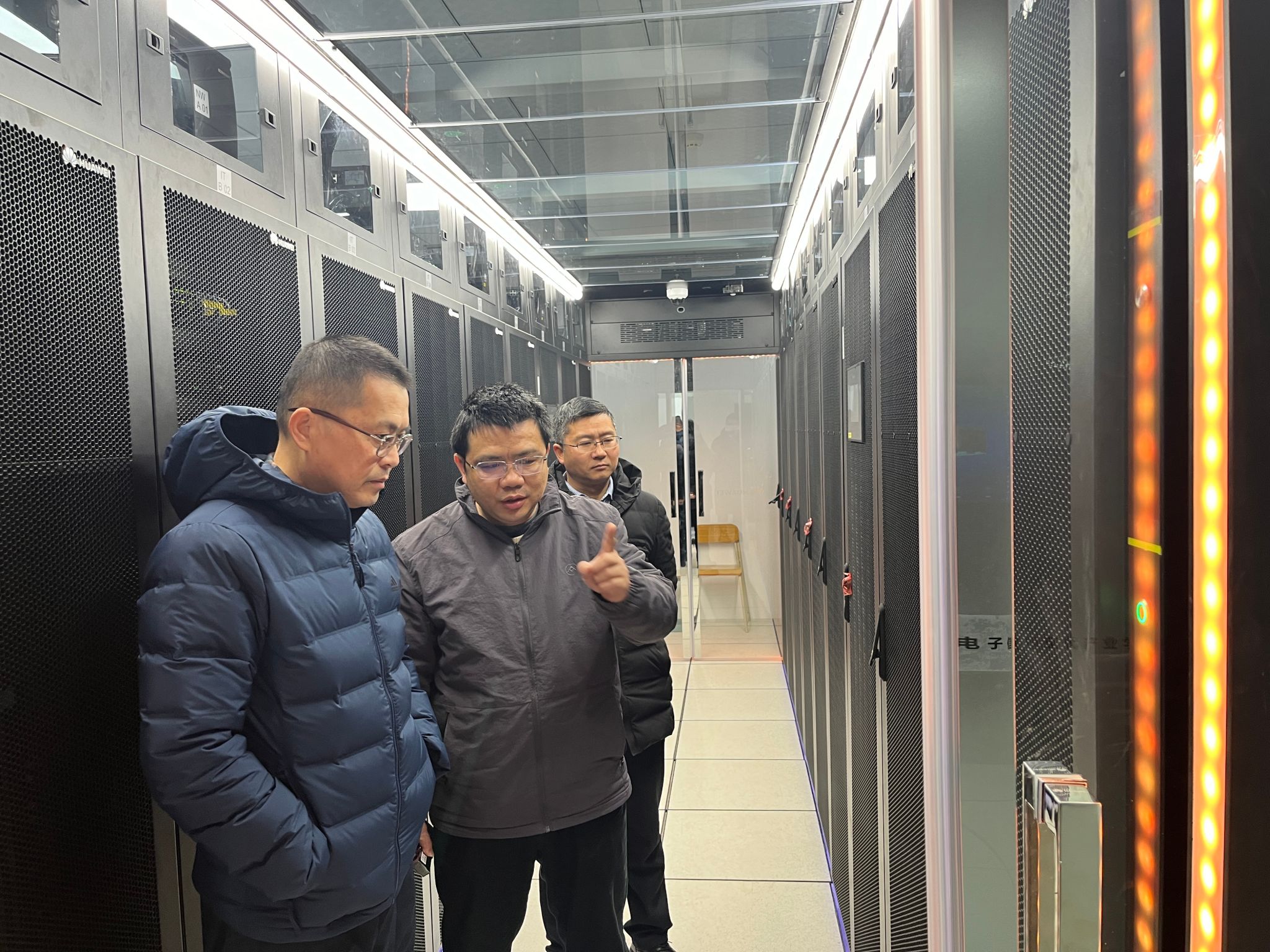 系领导班子一行人首先深入华为产业学院核心机房,对设备运行状况、UPS供电情况等方面进行仔细检查,加强机房安全管理,确保寒假期间机房设备的正常运转。