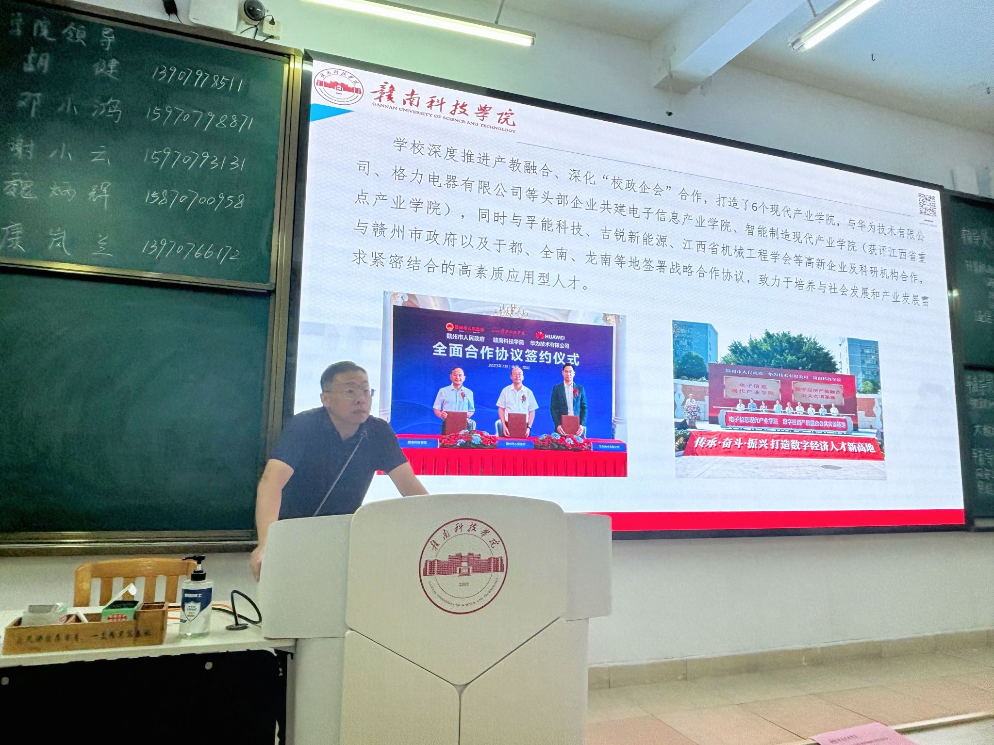 见面会上,何锦龙副校长从赣州文化、学校发展,学院优势等方面介绍学校“立足赣南红色沃土、不忘立德树人初心,牢记为党育人、为国育才使命”的人才培养目标,深入剖析赣科值得来,信息值得选,请家长放心。并对2024级新生提出四点要求,希望同学们大学四年中“吃好、睡好、玩好、学好”,做到健康饮食、规律作息,积极参加学校各类文体活动,提升文艺素养。同时要扎实学知识、学理论,学做人、学做事,在学业上、身体上、心理上充分磨炼,不断增长才干,努力成为堪当大任的时代新人。