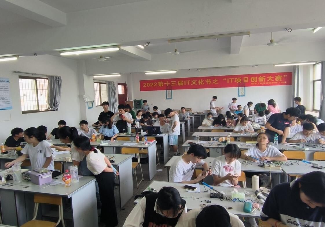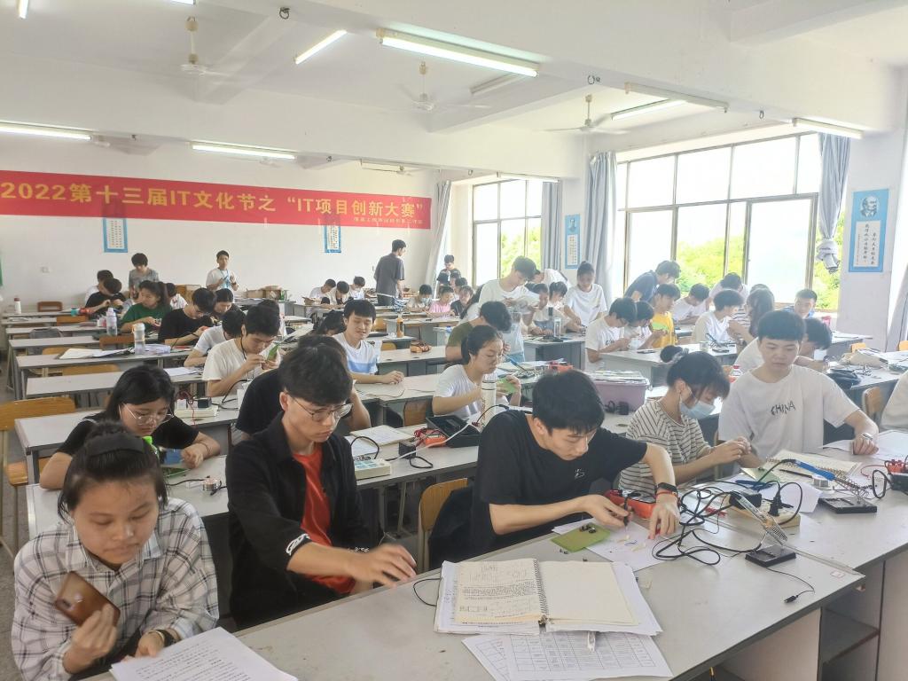 本网讯:为增强学生的理论联系实际、科技创新、工程实践能力,2022年5月29日上午九点到下午四点半,信息工程系在一教1404教室举办第十三届IT文化节创新大赛。此次大赛参赛队伍分为专业组和非专业组,非专业组通过了三天的赛前培训,并由专业组“一人带一队”参赛,本次比赛由谢小云老师指导。
