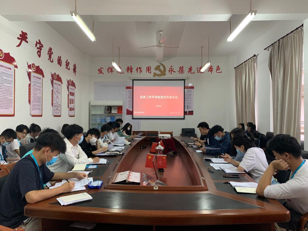 本网讯:为了提高共青团宣传能力和水平,更好地履行新形势下网络宣传工作的职责和使命,5月13日下午五点,信息工程系于主教八楼会议室组织开展网络宣传员培训工作。本次培训由信息工程系团总支书记陈世琪老师主持,信息工程系全体网络宣传员参加此次培训。