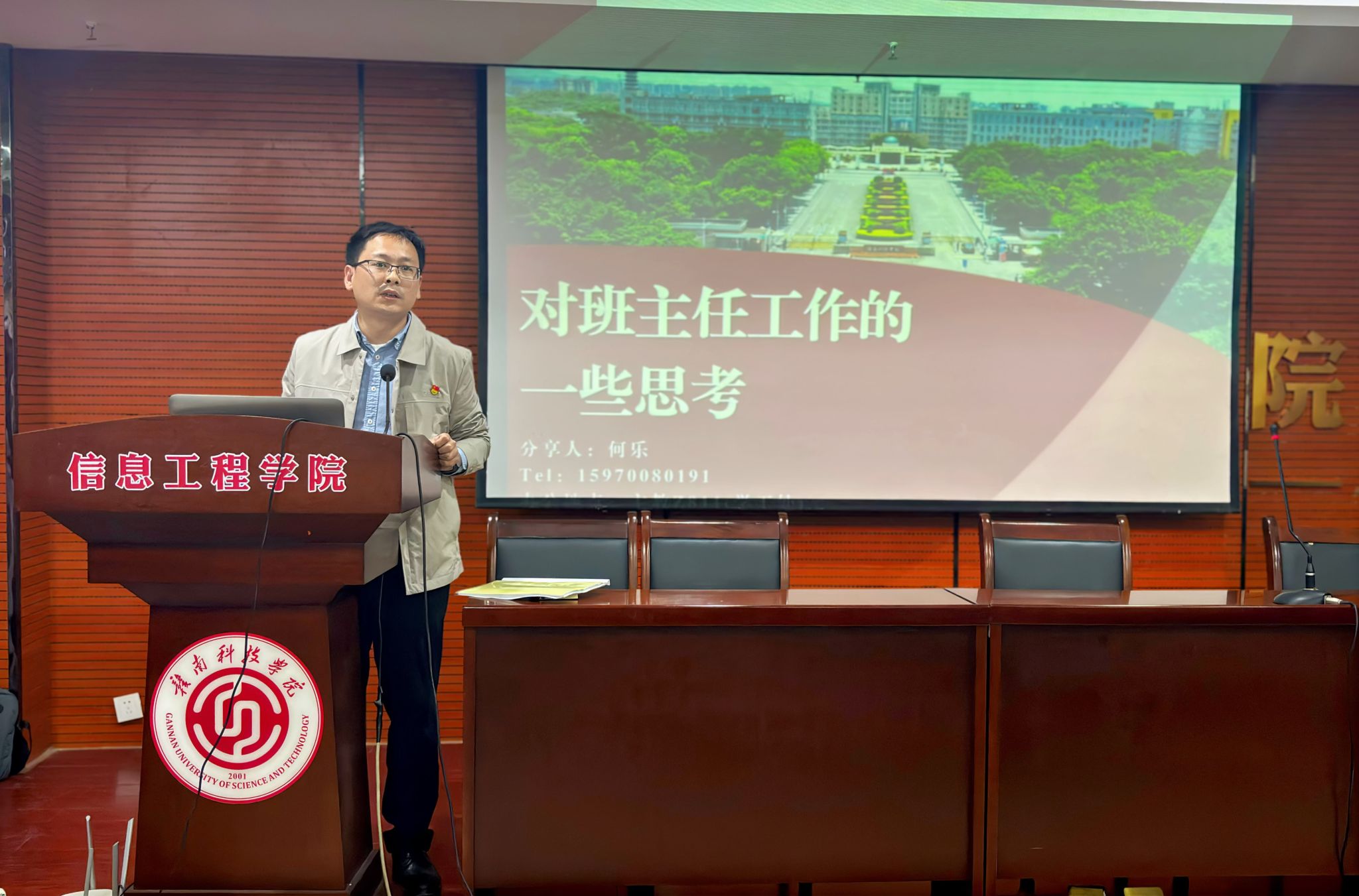 何乐以“对班主任工作的一些思考”为题,从班主任角色认知和班级建设思路等方面分享了他自己的宝贵的经验体会。何乐表示,班主任和辅导员不仅是学生学习的引导者,更是学生成长的陪伴者和心理健康的守护者,应坚持人本主义教育理念,尊重青年学生成长成才规律,时刻关注学生的全面发展,努力成为学生心中的良师益友。针对班级建设思路,何乐分享了以下几点经验:一年级要抓班风,立规矩,抓核心班委建设,形成积极向上的班级氛围;二年级要抓学风,通过抓两头带中间的形式,鼓励班级学生比学赶超;三年级要抓考研,加强与家长的沟通合作,家校合力帮助孩子找方向、定目标。四年级要抓就业,树典型,带动班级学生树立正确的就业观和择业观,为四年大学生活画上圆满的句号。