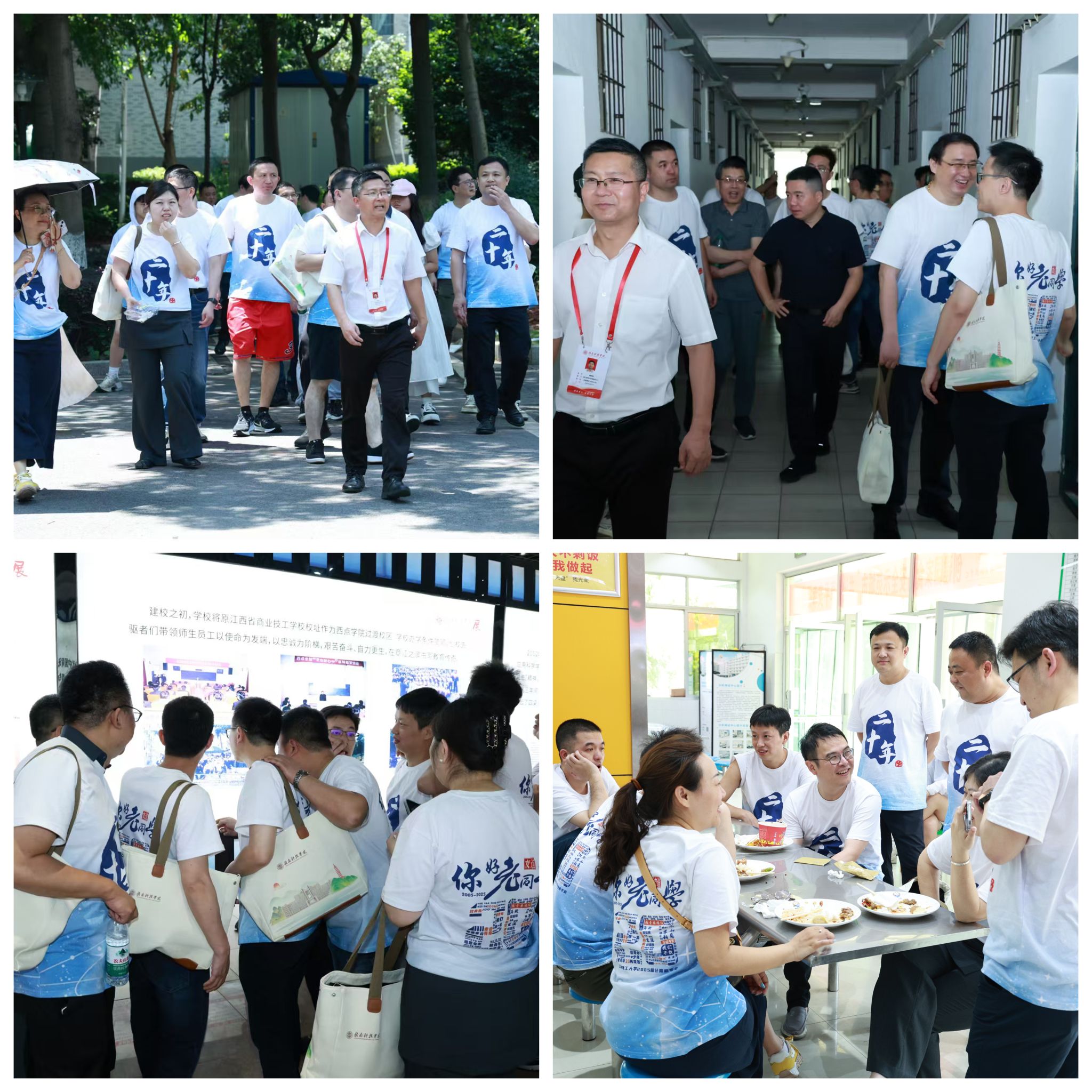 本网讯:5月2日,米乐mile体育官网2001级计算机专业27位校友重返母校,参加“携手同行 信创未来 重聚赣科”校友返校聚会活动。活动内容丰富,涵盖座谈交流、参观校园、走访宿舍、校史馆观摩及食堂用餐等多个环节,校友情谊在一天的行程中不断升华。