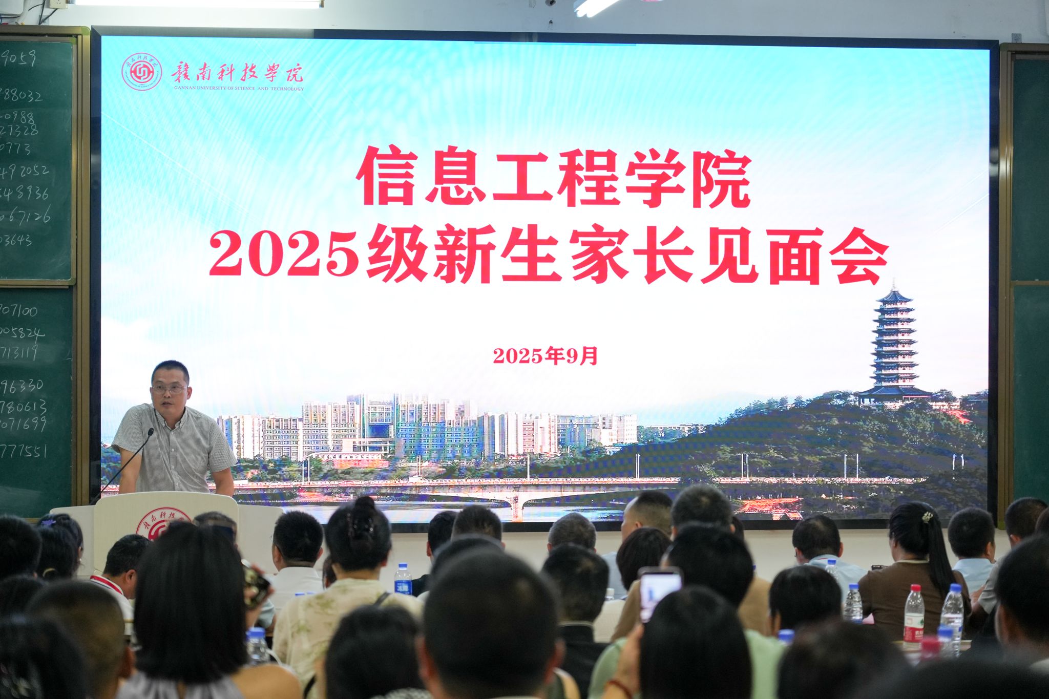 会上,学院党委副书记邓小鸿首先代表学院对各位家长的到来表示热烈欢迎,并详细介绍了赣州市悠久的历史文化、蓬勃的发展态势以及优越的区位优势,帮助家长们对孩子未来四年的生活环境建立初步认知。随后,他深情回顾了学校与学院的办学历史、学科建设、师资力量、人才培养及办学成就,让家长们对学院的办学实力和育人水平有了全面而深入的了解。随后,现代教育技术中心副主任、华为电子信息现代产业学院执行院长谢小云从产业学院的成立背景、培养目标、课程体系、实践教学、校企合作以及就业前景等方面进行了详细阐述,强调了产教融合、协同育人在培养高素质应用型人才中的重要作用,让家长们对孩子未来的专业发展和职业规划充满了信心。