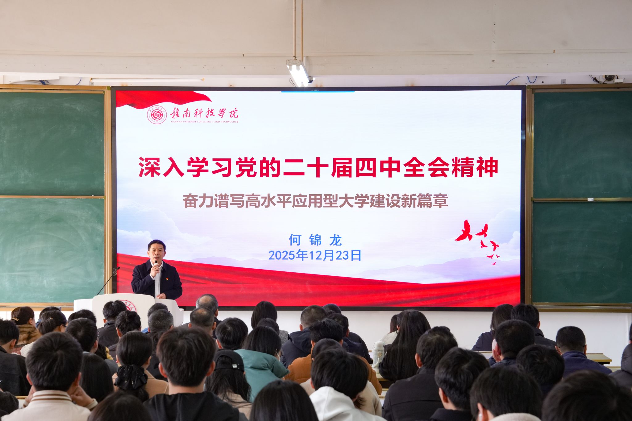 本网讯:为深入学习宣传贯彻党的二十届四中全会精神,切实将思想和行动统一到党中央决策部署上来,12月23日,学校党委委员、副校长何锦龙在崇善楼Z1D2召开专题宣讲报告会。米乐mile体育官网全体师生党员,招就处、学工处、团委、科技处、财务处全体教职工到场聆听。