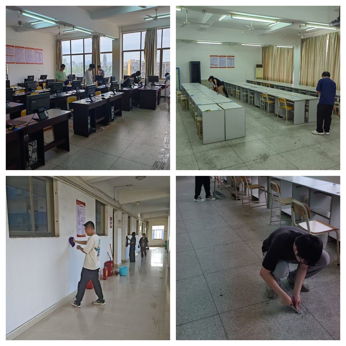 在劳动过程中,同学们互帮互助,展现出极强的团队凝聚力。计算机242班吴佳同学分享道:“以前在机房学习,总觉得环境维护是老师和保洁人员的事。这次亲身参与打扫,才知道保持机房整洁需要每个人的努力,而且看着自己整理后的机房焕然一新,特别有成就感。”
