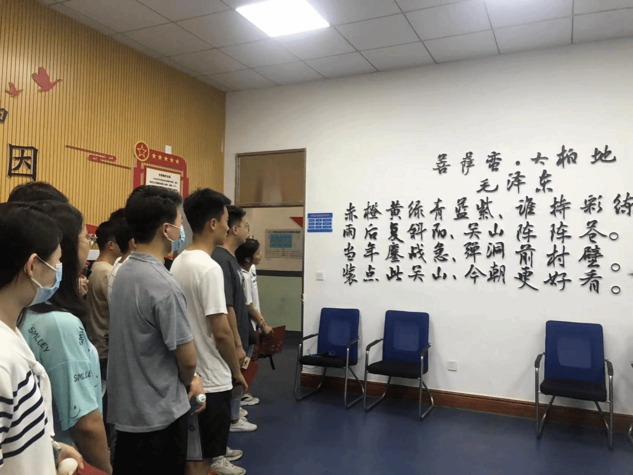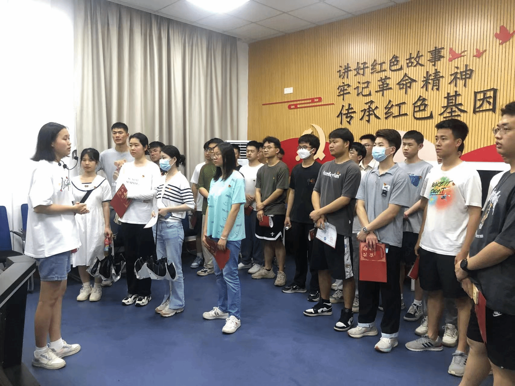 全体毕业生党员在抵达教育基地后,跟随讲解员参观了红色革命教育展馆,学习了大柏地伏击战、第三次反“围剿”等革命故事,并且在讲解员的带领下一同朗读了《菩萨蛮·大柏地》,随后,讲解员带领党员同志们通过VR技术身临其境地体验到“长江第一渡”等历史场景。最后,党支部为每位毕业生党员颁发了“毕业生党员纪念册”,全体毕业生党员重温入党誓词,牢记初心使命,不负历史重任。