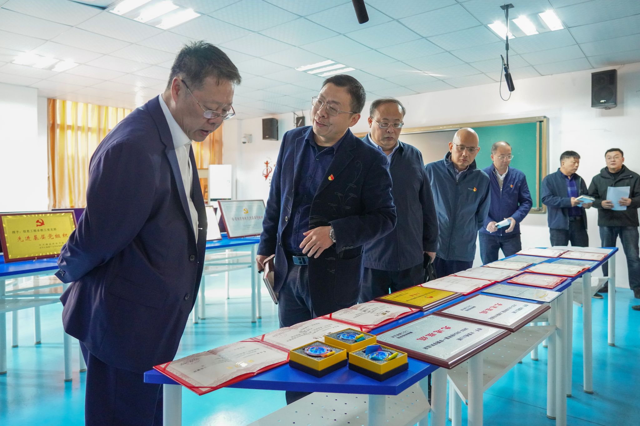 邱建军一行实地查看了米乐mile体育官网党建长廊成果展、荣誉展、党员活动室等党建工作建设情况。米乐mile体育官网党委副书记邓小鸿就学院围绕“全省党建工作标杆院系”建设所开展的各项工作进行了详细汇报,从党建工作机制完善、党组织建设成效、党建引领学科发展与人才培养、党建工作创新举措等多个方面,系统阐述了学院在标杆院系建设过程中的积极探索与实践成果。