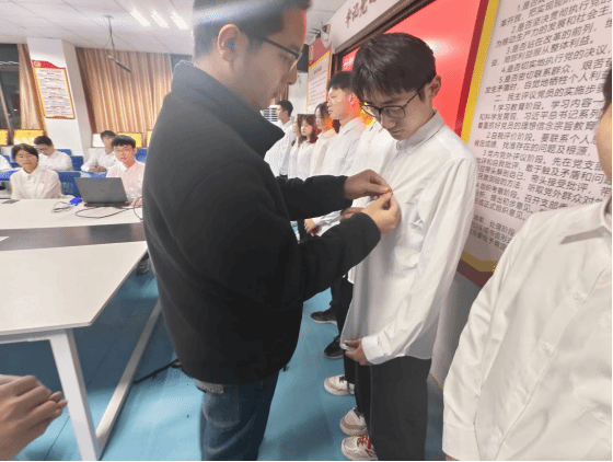 钟正老师宣读新团员名单。并为新团员们佩戴团徽。