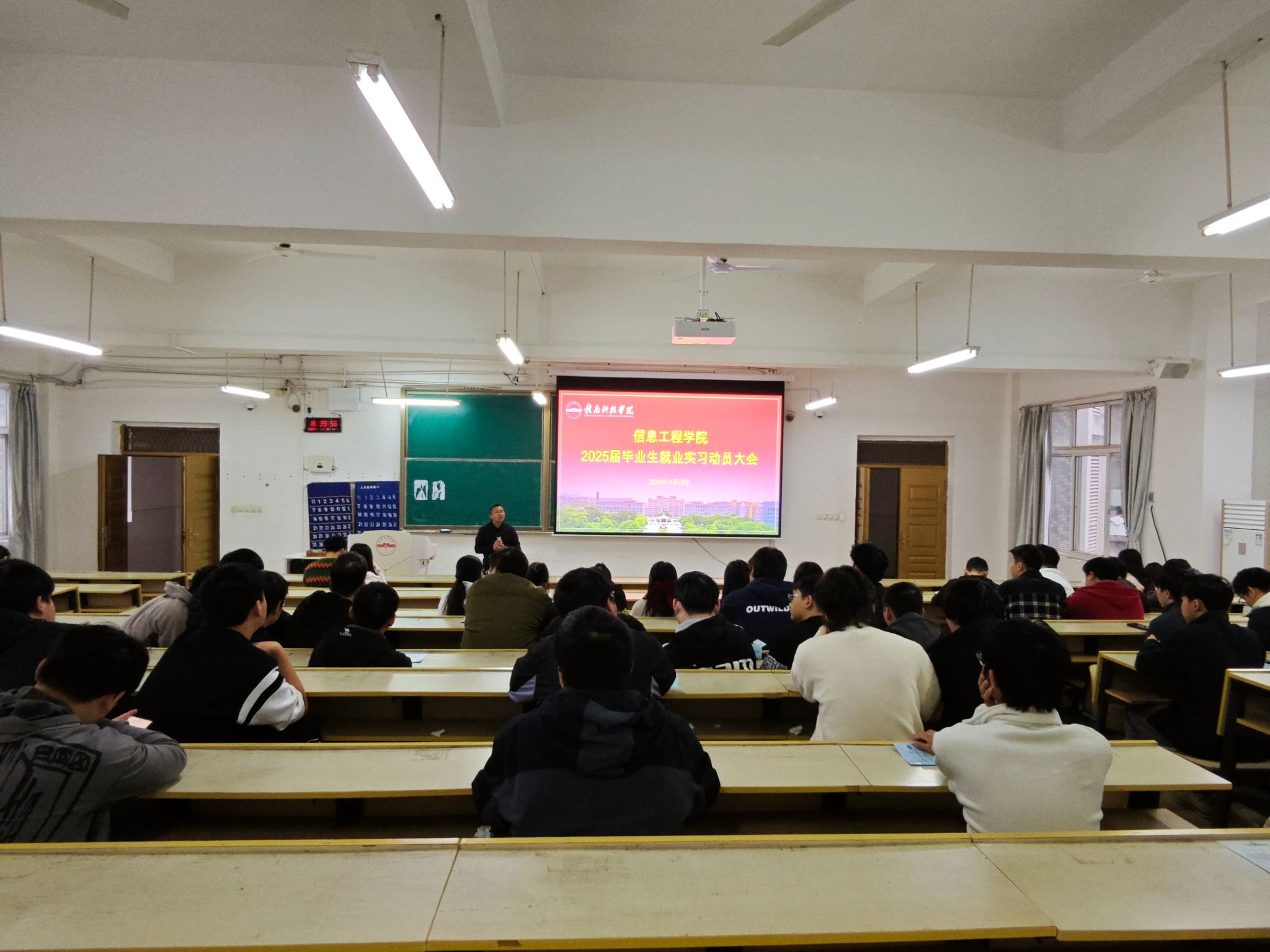 本网讯:11月18日下午,米乐mile体育官网在Z3D2召开2025届毕业生就业实习动员大会。米乐mile体育官网学工负责人魏炳辉,毕业班辅导员、班主任以及全体2025届毕业生参加本次动员会。