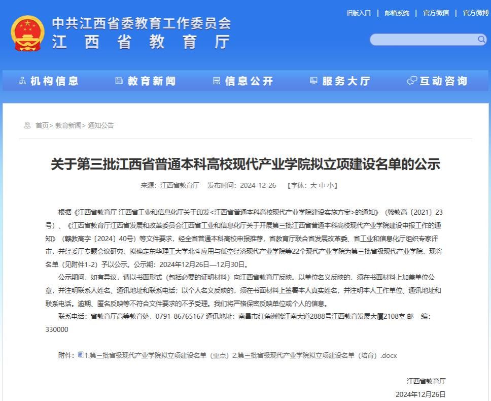 本网讯:12月30日,江西省教育厅、江西省工业和信息化厅联合公布第三批省级现代产业学院建设项目名单,米乐mile官网电子信息现代产业学院成功入选第三批立项建设重点项目名录,这标志着米乐mile官网在“产、学、研、用”深度融合、协同发展的又一进步。